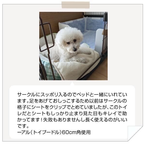 あなたの愛するペットのために、「はみ出し飛び散りを防ぐ囲い付きトイレ 60cm角」をお勧めします。このトイレは、特に年齢を重ねたペットや、退院後のペットにぴったりのサイズ感で、安心して使用できるよう設計されています。落ち着いたデザインが、どんなインテリアにもマッチします。